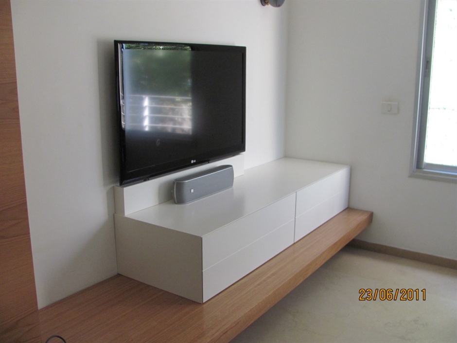 בסלון או חדר גדול, ניתן לשלב מזנון טלוויזיה צף ארוך, ובו תאים עם דלתות ומגירות לפי בחירת הלקוח. העומק והגובה של המזנון נקבעים בהתאם לדרישת הלקוח. מזנון טלוויזיה צף מתאים מאוד גם להתקנה בסלון אך גם לחדרי שינה או לפינה צדדית במטבח.